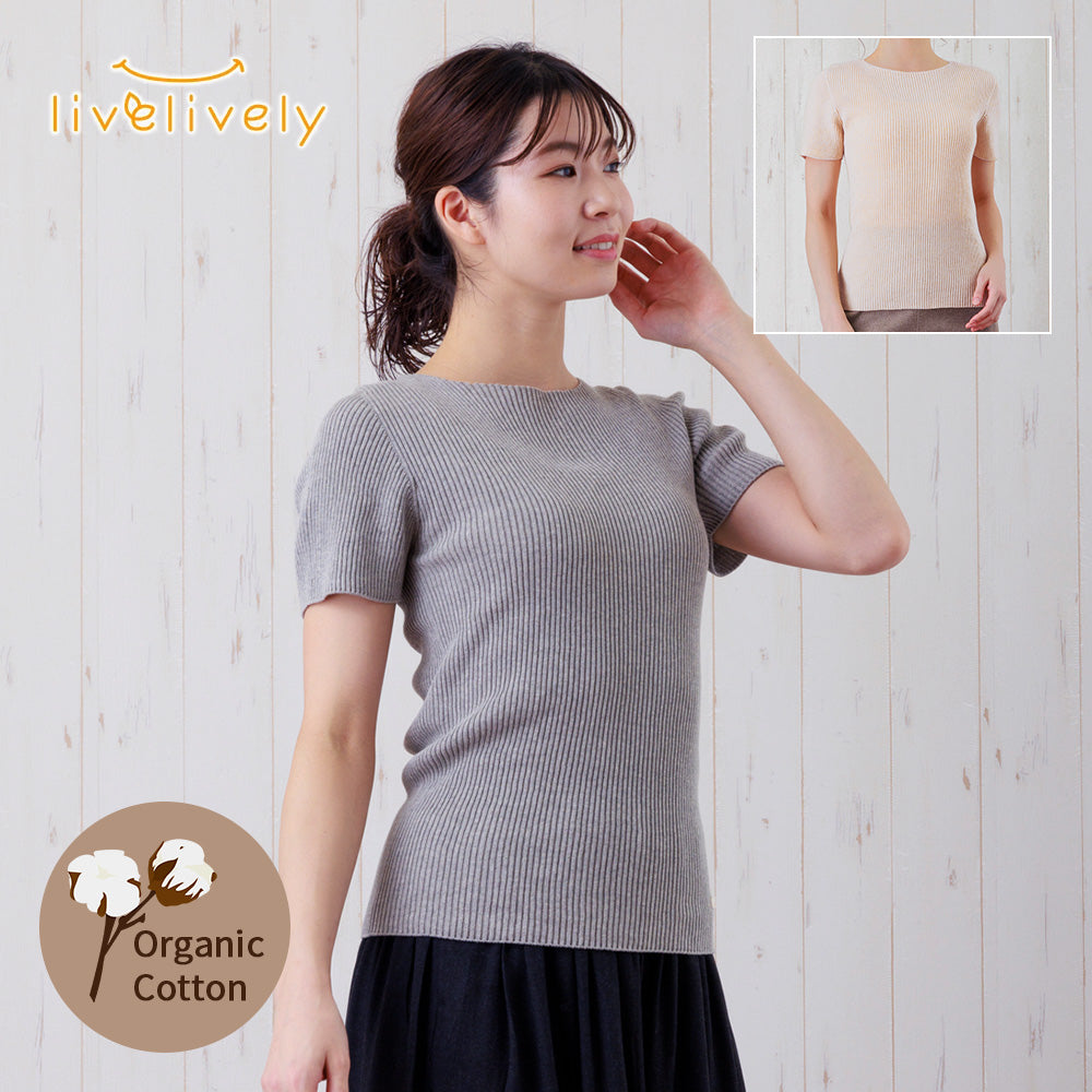 リブリブリ リブセーター プレーン オーガニックコットン M・L・2L リブ カットソー セーター レディース 女性用 婦人用 半袖 インナー トップス リブ 生地 livelively